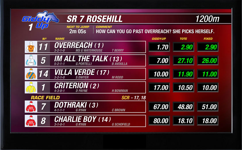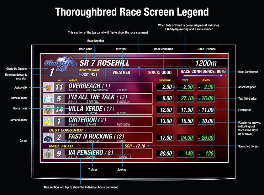 Giddy-Up's Thoroughbred ratings form the backbone of our service. Offering coverage of all Metropolitan racing including Quaddie Guides and a comprehensive selection of Country and Provincial racing.