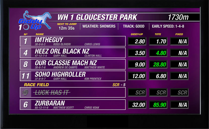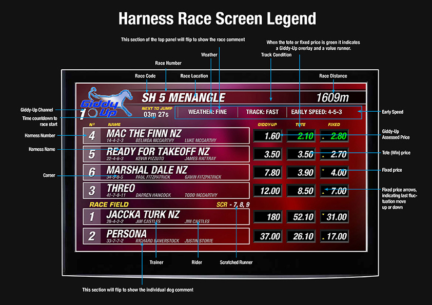 Click to view Harness Screen LegendGiddy-Up Harness ratings are proving to be a favourite with punters in subscribing TAB venues across Australia.